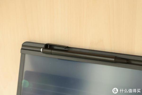 在屏幕顶端还有一个凹槽,有磁吸功能,平常手写笔就可以吸在这个位置摆放,不容易丢失。