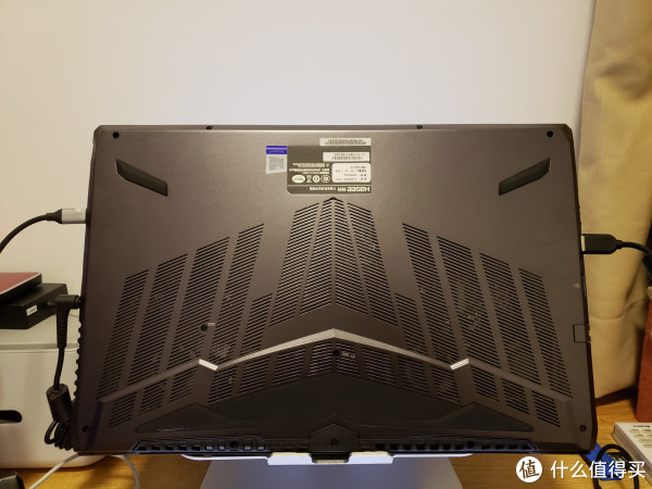 机身左侧是出风口、电源口、HDMI口、2个雷电口、2个Type-C口以及2个USB口(一个3.0、一个2.0)。尽管不像超级战神那样后方还有接口,但相信无论是办公还是游戏已经够用,基本不需要额外的拓展坞。(个人是因为之前一直在用超级本,买了个C口拓展坞,顺便继续用着懒得拔插了)