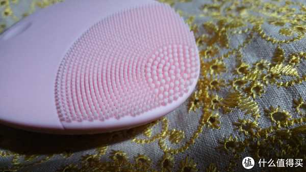 全身无缝硅胶,8档强度,IPX7级防水。颗粒感是有的,但是摸上去很柔软,上部有不同的刷头颗粒,顶部的刷头颗粒较大,尖点的造型适合在鼻头鼻翼等t字区域处重点清洗,下面的颗粒较小,对脸颊起到柔和清洁的效果。