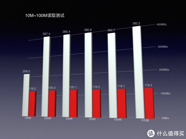 接下来第三圈是比拼10~100MB文件的读取/写入测试。