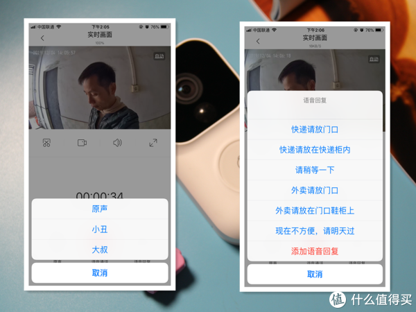 如果访客为陌生人门铃还提供小丑,大叔腔调两种变声和访客对话,令不怀好意之人不敢轻举妄动,变声功能的作用是为独居女性提供了一个防范工具。