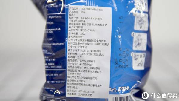 介绍滤芯的侧面下部能看到一些参数,比如额定总净水量为150L,净水流量为0.3L/min,进水压力为0-0.3MPa等等,而这个意大利品牌的净水壶生产厂商不用想,仍是我国广东……