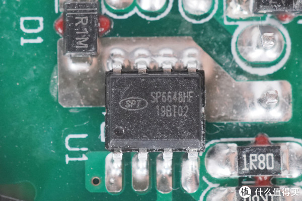PWM主控芯片采用无锡硅动力SP6648HF,这是一颗电流模式PWM控制芯片,其内置650V高压功率MOSFET,应用于功率在18W以内的方案。SP6648HF在PWM模式下工作于固定开关频率,这个频率是由内部精确设定。在空载或者轻载时,工作频率由IC内部调整。芯片可以工作在绿色模式,以此来减小轻载时的损耗,提高整机的工作效率。