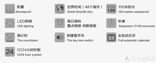 比较实用的功能是秒表和倒计时,这回女儿可以不用担心练琴时间长了,哈哈哈。。。闹钟可以设置为整点响报,但闹钟只能设置一个,有点少啊,如果可以起床一个,上学一个,睡觉一个,就完美了。全自动日历也是不错的,星期和日期都有,不用像机械表那样需要每个月调整。至于全球时间,由于并不出国,国外也没亲戚,所以等于没用。