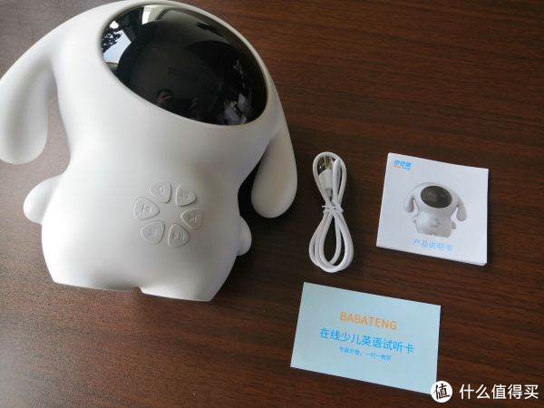 打开包装后,内部是巴巴腾机器人、电源线、使用说明书以及一张在线学习卡。