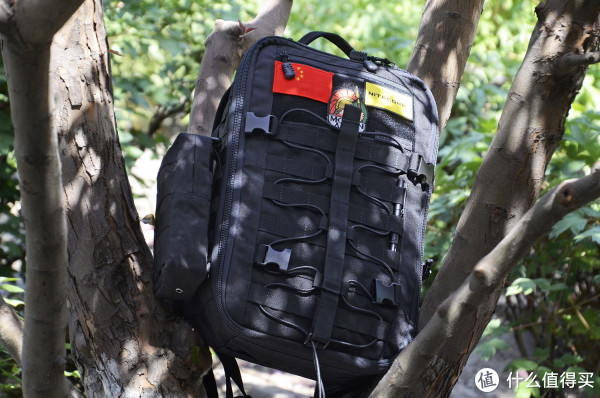 BP25从外观来看自成一派,并没有模仿国际大牌的痕迹,呈规规矩矩的长方体外形,长宽高三围45×28×412.5px,既然名字叫BP25,设计容量就是25升,属于中型背包,可以满足一日出行所需。整包有三个仓位开口,可肩背可手提,正面由大面积魔术贴表面,可以根据自己的喜好粘贴一些士气章,增加个性。