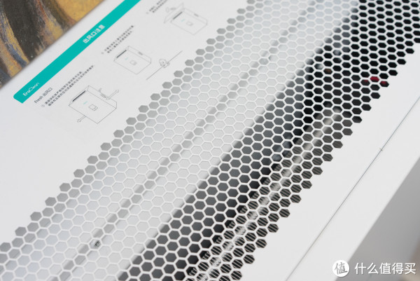 包装盒的一侧标着主要参数:98%的PM2.5去除率,600m?/h的强劲新风量以及最大适用160㎡的大空间。