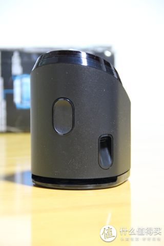 背后的椭圆形按键就是清洁舱的开启按钮,右边那个凹槽里面是电源接口。