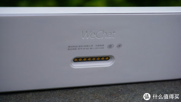 主机底部也刻有“WeChat”logo,另外就是接触式供电接口了。还印刷有“中国制造”,而且是中文印刷,这点好评。(不过也说明这款产品还没有走出国门?)