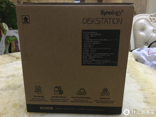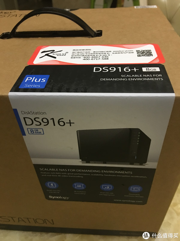 喂喂喂。。。大哥你送的硬盘,你就这样送过来,不怕摔了么。。幸亏有3年质保。外箱设计不错,上方有把手,可以方便移动,看起来群晖还是比较用心的。
