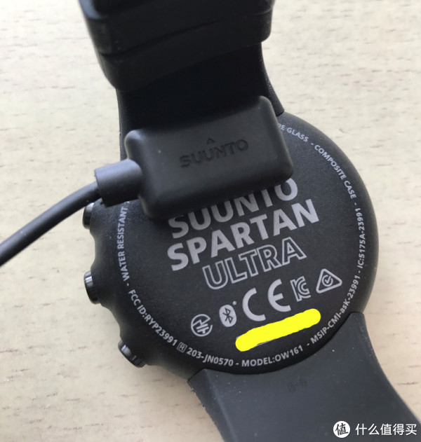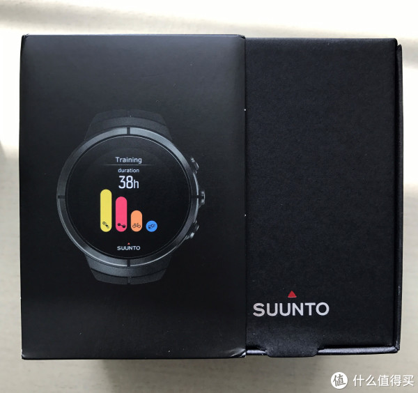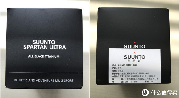 拆掉塑封好看多了, 下图分别是正面、侧面、背面,正面是手表的彩印,侧面两边都是suunto品牌字样,背面标识了型号、材质、颜色等,还有我抹掉的序列号
