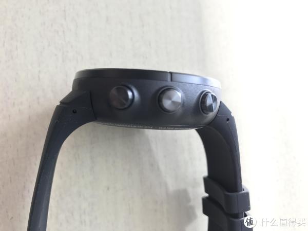 表盘厚度及三个按键,别看这么厚,手表很轻
