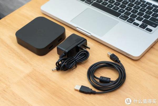 向日葵控控A2的配件展示,主机、电源适配器、USB上行数据线。