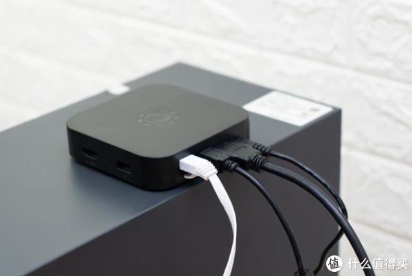 接着就是给控控A2接线了,使用前用户需要自行准备一根网线和一根HDMI线,如果所处的环境没有网络也不要紧,控控A2的USB-A接口可以接入4G上网卡,被控制的主机哪怕是没有接入网络也不影响控控远程控制。