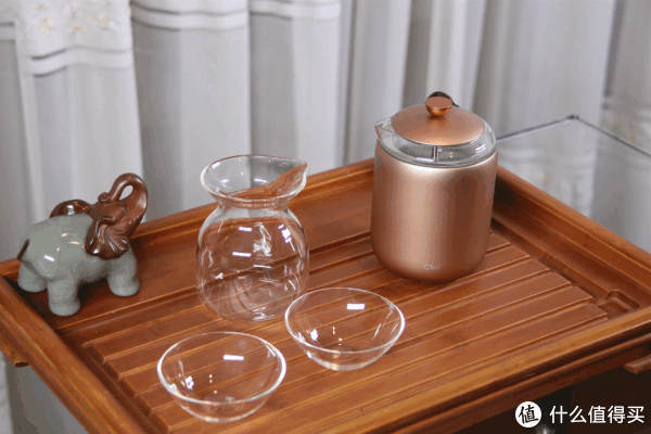 大师壶借鉴了传统功夫泡茶分次泡制的工艺,所以茶具配套了一个公道杯和两个茶杯,均采用了高硼硅玻璃材质,不仅强度高,耐高温,也不怕冷热交替。得益于玻璃制造技术的发展,杯壁极薄,过分点说手感轻若鸿毛一般,最大优点是有利于观察茶色,缺点当然就是隔热效果差点,喜欢喝热茶的就要耐心等待一下了。