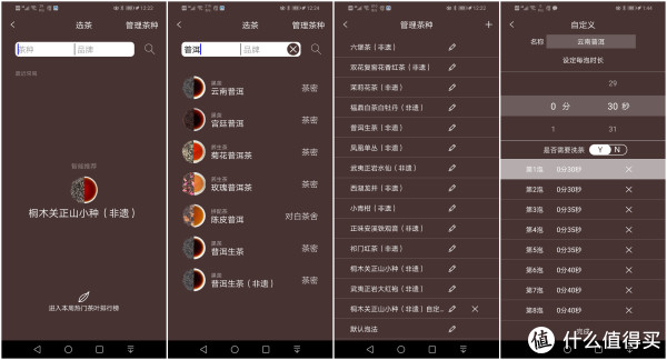 文首提到了茶叶泡制时长的重要性,下面就来看看如何进行时长调整。在“泡茶”首页还可以搜索更换茶叶,系统内置了一百多个茶叶品种,每一种都推荐设定了泡制时长,如果不满意系统推荐,还可以自定义调整,以便适合自己的口味。