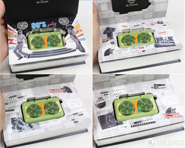 翻开包装盒,猫王霹雳唱机躺在书本中间,第一页就是80年代风格的人物装饰。