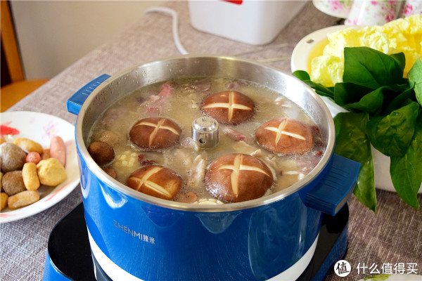 虽然现在还没到吃火锅的季节,不过收到火锅后,还是迫不及待的吃了顿火锅大餐,由于时间比较匆忙,准备的食材不是很丰富。臻米升降电火锅额定功率1500W,拥有5档火力调节,大概只用了8分钟就沸腾了,等待时间不是很长。