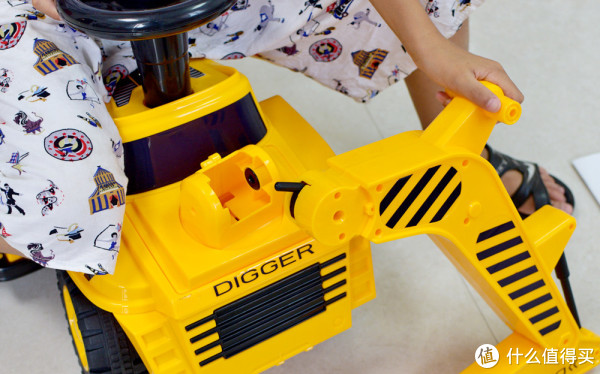 安装好方向盘电池,按下方向盘中间的圆形喇叭按钮,挖掘机的喇叭就会响,总共有三种声音效果循环,更加丰富孩子们玩耍时的乐趣