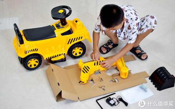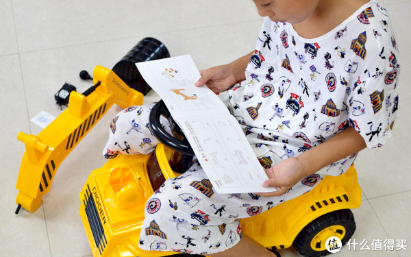 根据说明书标注,这款儿童挖掘机比较适合2-3岁儿童使用,不过我这已经“超龄”的儿子看到它,确也非常的喜爱。打开包装后,我看配件和组装并不是很复杂,决定让孩子自己进行独立组装试试
