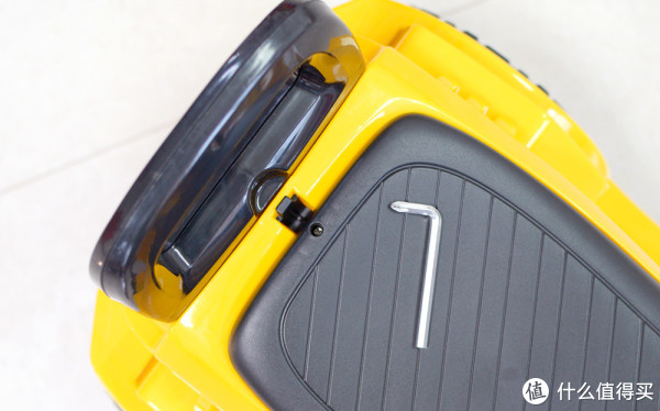 方向盘的内侧,有一个电池仓,用配套的“十”字头扳手可以打开仓盖