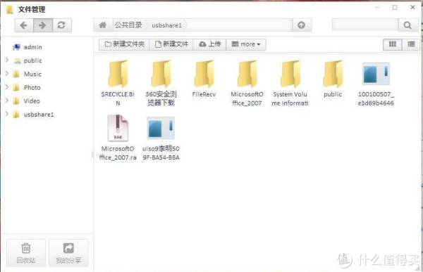 除了使用网络驱动器形式管理文件外,还可以使用TOS桌面中的文件管理功能。这个文件管理插件各方面操作和windows资源管理器基本一致,可以实现图片浏览,视频播放、文档查看、文件复制粘贴移动等功能,还提供了回收站和文件分享功能。使用文件分享功能时,系统会生成一个共享链接,将这个链接分享给朋友后,他们就能从你的NAS中查看下载这些文件,为了让数据更安全,文件分享还提供了密码选项,几乎和百度网盘分享文件的操作一致。