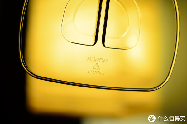 果汁杯底部有Hurom的LOGO,和材料名称SAN