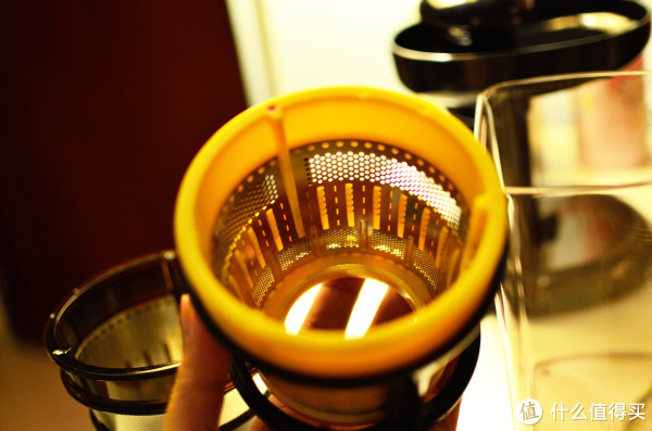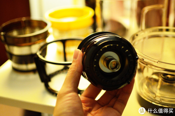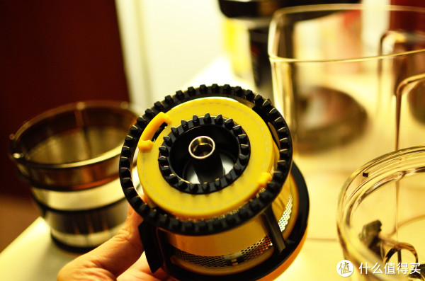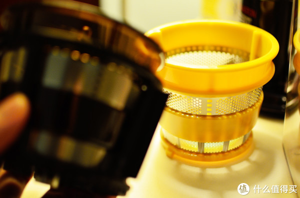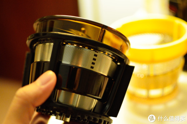 因为我要喝橙汁,所以我们要把里面的细网换掉,那我喝苹果汁、胡萝卜汁用啥网
