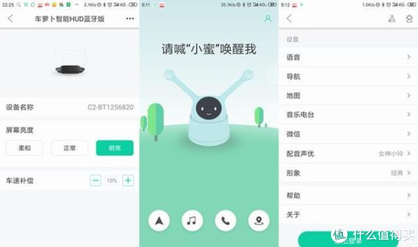 车萝卜智能HUD蓝牙版搭配了一款名为小蜜的APP,它可以导航、电子狗蓝牙电话、语音点歌、语音聊天、网络电台等,导航信息可通过HUD投射,而语音类的信息还是通过用户手机自己实现,车萝卜智能HUD蓝牙版主要的作用还是辅助驾驶。