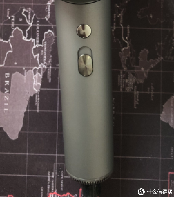 最后说下在手柄上有2个按键,主要是控制:风力中/高调节+温度冷/暖/热风调节,按键采用轻触式电子开关,比较偏软,没有什么阻尼感,温度调节键的键程很短,可以轻松快速短按来实现恒温和热风之间切换,如果需要冷风则需要长按(这个就比较麻烦点了)。