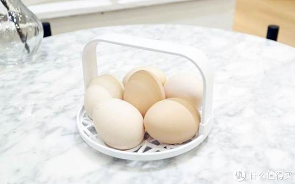 煮蛋机有两个蛋架,分别是多功能蛋架和煮蛋架。煮蛋架可以容纳放置6只鸡蛋,不过鸡蛋直径大于33mm时,则只能容纳5只鸡蛋。并且针对功能的不同在蛋架栏高上面也有所不同,煮蛋架相比多功能蛋架有更高的架栏,这是因为煮蛋需要使用高水位,如果架栏的高度不足时将会失去对鸡蛋的固定作用。