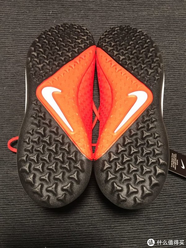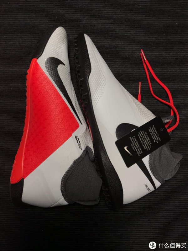 可能很多人对这大红三角感觉无爱了,不过鞋子就是这样,想买的话就越看越喜欢,大体上来说鞋身采用合成材料,触感较硬,前面的三角形纹路突起,有一定的辅助摩擦作用。鞋领为普通的袜套设计,有点打脚,好久没穿过会打脚的足球鞋了,果然还是次高端。