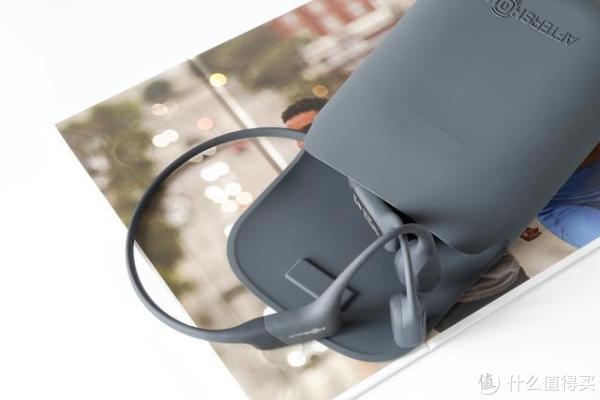 附赠的配件收纳包也是非常的精致,材质为硅胶,摸起来手感非常细腻,外部浮雕aftershokz的logo。收纳包采用磁吸式闭合方式,紧实安全又方便,缺点就是比较容易沾染灰尘。