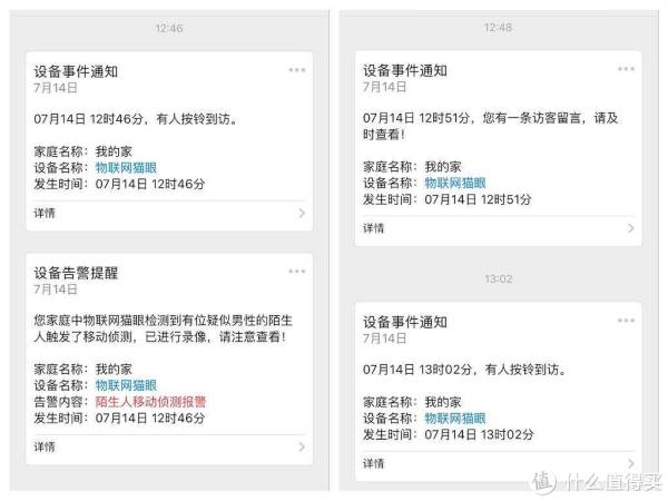 不管是普通的固件升级,还是有人按下门铃,亦或是侦测到有陌生人长时间逗留,斑点猫APP都会及时的进行消息通知,提醒屋主及时发现室外的异常情况,并及时处理。