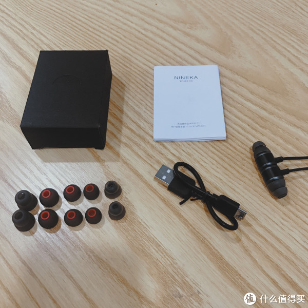 包装盒内有说明书、充电线、3对子弹头耳帽和2对双层耳帽。