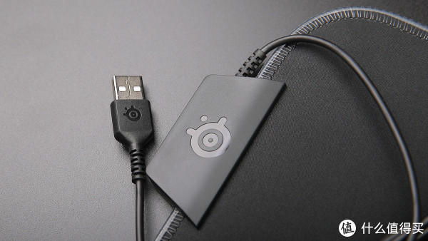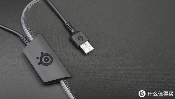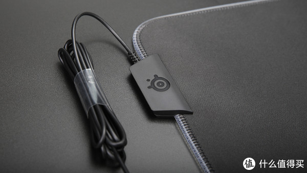 在评测其他发光鼠标垫时,笔者最常遇到的问题就是突起的灯光模块被设计在上方,恰好阻碍了鼠标线材的移动,赛睿在QcK Prism RGB上就将灯光模块设计在左侧完美解决了这个问题同时增加了美感,颜值和使用性都远胜同类发光鼠标垫,从这一点可以看出赛睿在电竞外设设计上的专业之处。笔者个人觉得如果这里的赛睿logo再设计成RGB灯光应该会更好看。