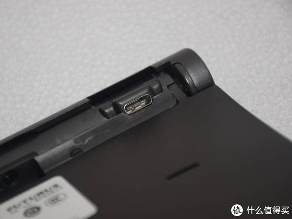 Type-C供电口设计在机身转轴处,方向斜向前方。个人感觉用12V供电的话,使用Type-C接口其实意义不大,毕竟只能专用适配器才能使用。如果能够设计成5V的接口,那就可以使用车充或者移动电源供电了,可玩性更高一些。