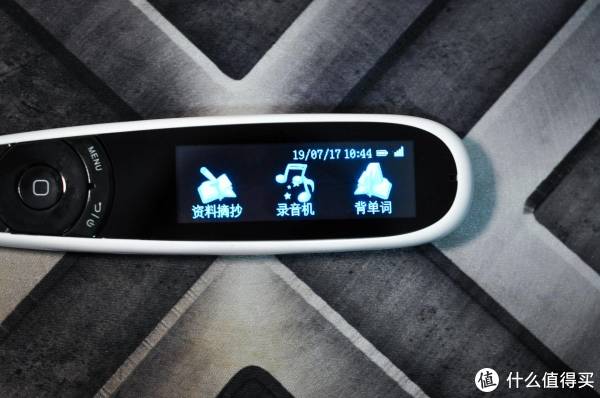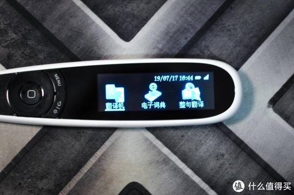 首先看一下主菜单,整支笔有八大功能模块,分别是翻译机、电子词典、整句翻译、资料摘抄、录音机、背单词、听力练习和系统设置。大家可以感觉的出来,这是一款具有比较强学习功能和户外功能的产品,主要的功能设计也是围绕学习者和旅行者需求展开的。