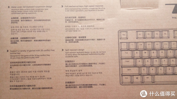 背面和侧面是关于键盘特点的介绍以及厂商信息。↓