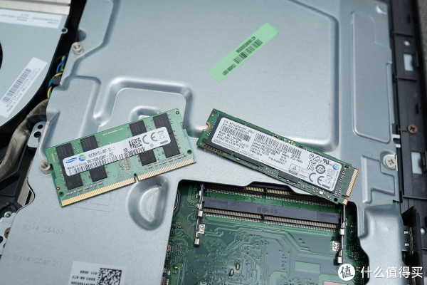 这种状态是否可以升级内存或者内置固定硬盘?(我拆的这台是高配版本,标配256G NVMeSSD)实际也是可以的,取掉这边的保护盖,就露出内存还有M.2口插槽了。当然这边支持的还是笔记本内存,并且有两个内存插槽
