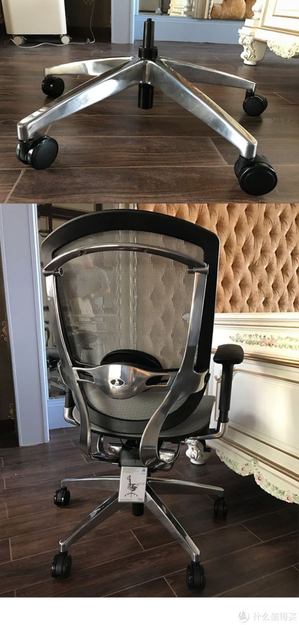 将插上气压棒、椅轮后的底座插入到座椅后,就差不多搞定了,整体滑动关节用起来非常顺畅,铝合金底座很沉,这把椅子组装好了之后有27公斤,可见用料是很足的。