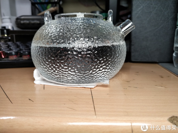 图中可以看到我的水位线,大约在500ML往上一点,在水即将沸腾的时候,壶嘴就已经开始向外溅水,完全沸腾的时候茶水已经开始大量的外流了。显然,在煮茶的时候,这是一件非常败兴的事。在煮茶的情况下,这壶的实际可用容量绝对不会超过450ML,保守估计在400ML左右。