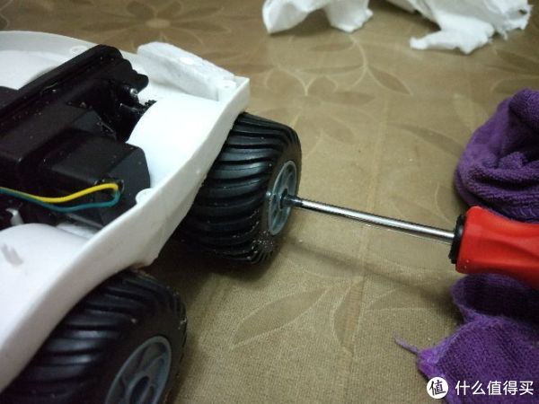 昨天全家带着遥控车去某湖边秋游(LD单位组织),老婆同事的孩子借去玩了一阵后就还回来说轮胎不转了,试着启动后听见里面咔嚓咔嚓声,不用问进沙子卡齿轮了...晚上回家把小主哄上床后开拆!