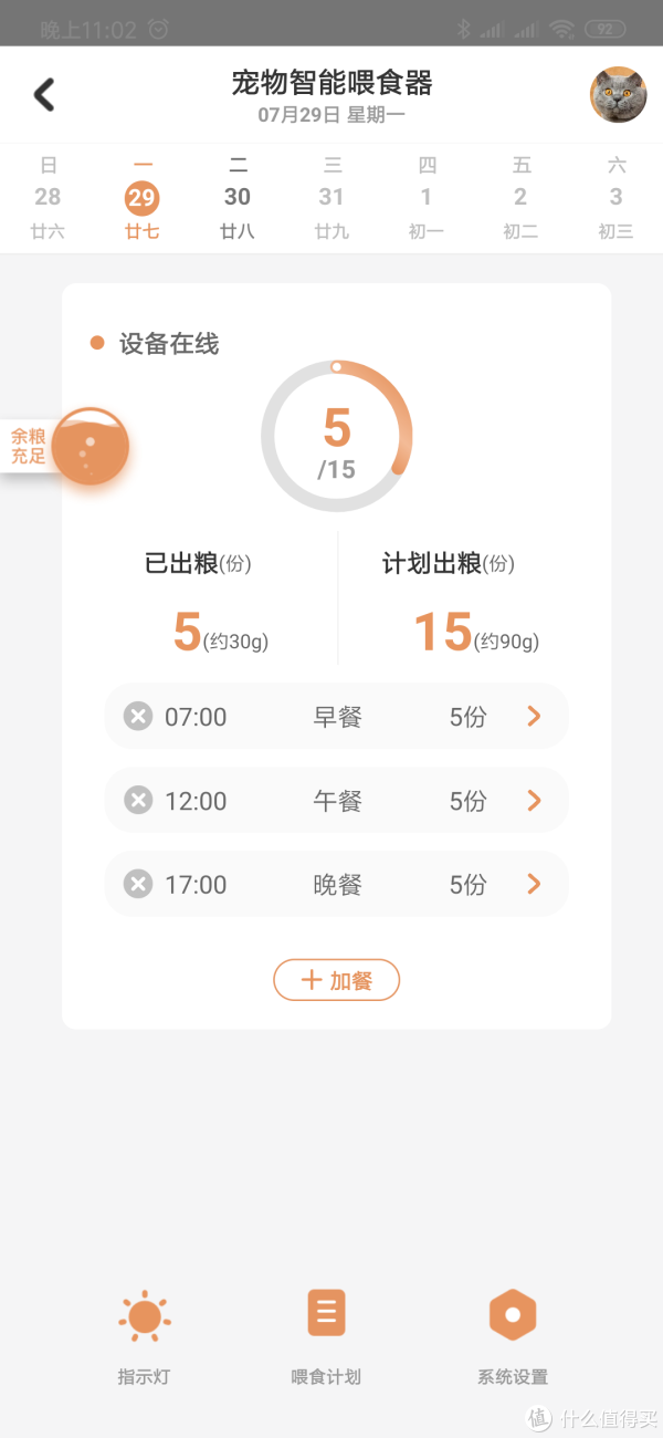 △也可以自定义喂食量,如果主子反感灯光,还可以关闭指示灯