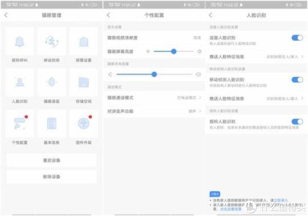 可设置的部分也非常多,包括屏幕的设置,门铃的声音,移动侦测,人脸识别等,其实默认就可以了,不过默认移动侦测是关闭的,需要更安全的监控话需要手动开启。