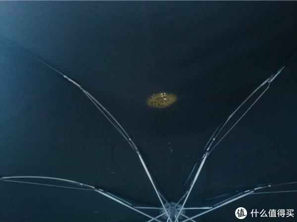 从伞下往上看时可以看到有一个光斑,还是比较明显的,但不会出现伞下都很通亮的情况。