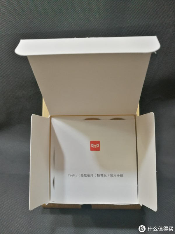 打开包装上盖一入眼帘的为Yeelight感应夜灯(插电版)使用手册