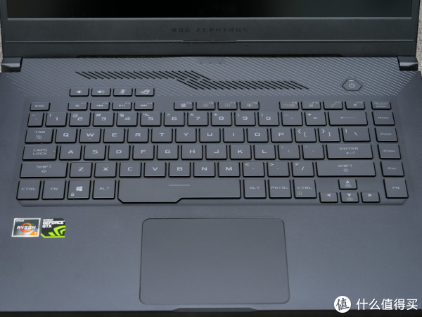 打开之后就可以看到ROG Zephyrus的标志,Zephyrus是西风之神,可以看出华硕对这个本子的期许。刚才看到的几个指示灯因为位置设计,现在也看得到