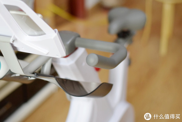 与传统动感单车不同,野小兽智能动感单车M1虽然没有显示屏但拥有一个屏幕支架,使用者可将ipad放入其中充当屏幕使用,相比没有屏幕或者屏幕固定在动感单车上来说,车车认为这种屏幕支架可以通过蓝牙的方式与ipad相连效果更好,毕竟不使用单车的情况下,可使用ipad做一些其他事情。
