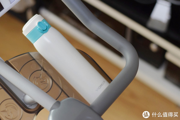 除此之外在使用野小兽智能动感单车M1时,需要根据课时在动感单车上骑行40多分钟,在骑行过程中使用者需补充大量水分,在屏幕支架下方拥有一个水杯支架,使用者可将水杯放入其中,可以说储物架的设计为使用者带来了不少方便。